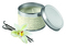 Duftkerze 60gr in Metalldose mit farbiger Dekoration.