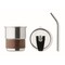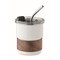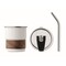 Einwandiger Becher aus recyceltem Edelstahl (90% recycelter Edelstahl, 10% Edelstahl) mit abnehmbarem Griffteil aus Akazienholz. Trinkhalm aus Edelstahl mit Halterung. Auslaufsicherer Deckel mit Trinköffnung. Füllmenge: 260 ml.