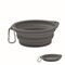 Faltbarer, transportierbarer Trink- oder Futternapf für Haustiere aus Silikon mit Karabiner. Füllmenge: 350ml. Der Karabiner ist NICHT als Sicherung beim Klettern geeignet.