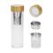 Edle Glasflasche mit integriertem Teesieb. Im Inneren der Flasche aus Borosilikat-Glas ist ein Teesieb aus Edelstahl befestigt. Verschließen lässt sich die Flasche mit einem eleganten Bambusdeckel mit Silikondichtung. Sie lässt sich komplett auseinandernehmen und dadurch leicht reinigen. Füllmenge: ca. 0,45 Liter.