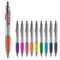 Stilvoller silberfarbener Kugelschreiber mit farbigen Griff. Metallclip, Drücker, Zwischenring und Spitze. Blauschreibende Jumbo-Mine mit langer Schreibleistung.