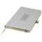 Kunstleder-A5-Notizbuch (14,2 x 21,4 cm, Lederimitat) mit Gummiband, Farbband, Stiftschlaufe und Akkordeon-Tasche an der Rückseite. Enthält 96 Blätter cremefarbenes Papier in 80 g/m2 und wird in einem Journalbook mit weißer Hülle angeboten.