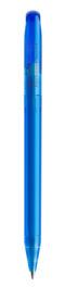 Mit seinem schlanken Gehäuse und der formschönen Kappe, die schwungvoll in den eleganten Clip übergeht, ist er ein Klassiker des Schreibgeräte-Designs. Wo die Kappe in den Clip des DS1 übergeht, lässt sich ein farbiger Punkt setzen. Oder man lässt die Form ohne Punkt einfach ihren Schwung ausleben. Ganz ohne Punkt und Komma. In der Ausführung mit gefrostetem Gehäuse (TFF) lieferbar in sechs Standardfarben, hergestellt mit einem Rezyklatanteil von 50%, gekennzeichnet mit dem internationalen Recycling-Symbol. Sondergehäusefarben ab 10.000 Stück. Fünf Druckflächen für Werbeanbringungen stehen zur Verfügung. Der optionale Kappenpunkt ist auf beiden Seiten in fünf Farben bedruckbar. Ausgestattet mit der umweltfreundlichen auswechselbaren FLOATING BALL® lead free-Großraummine 1.0, Schreiblänge 5.000 m, Schreibfarbe Blau oder Schwarz.