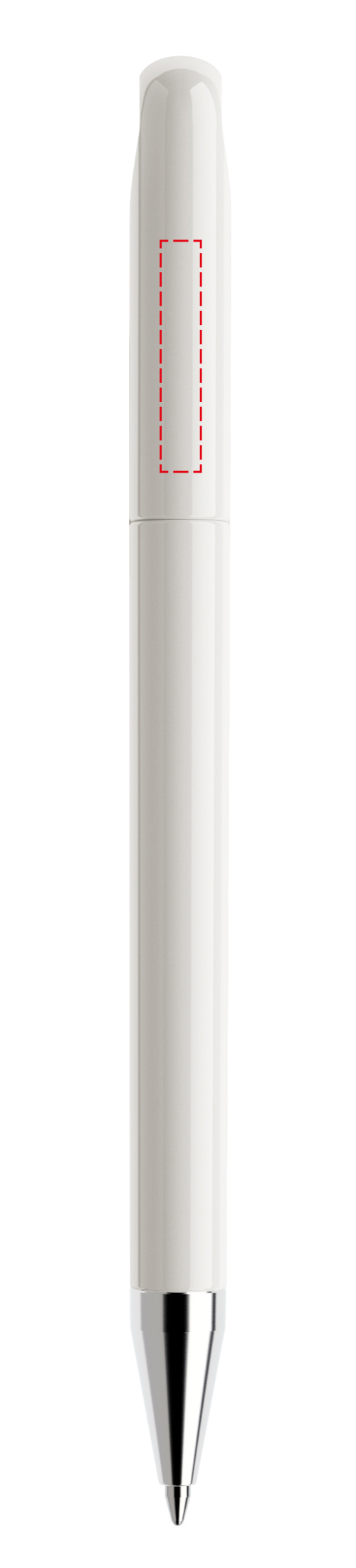 Mit seinem schlanken Gehäuse und der formschönen Kappe, die schwungvoll in den eleganten Clip übergeht, ist er ein Klassiker des Schreibgeräte-Designs. Wo die Kappe in den Clip des DS1 übergeht, lässt sich ein farbiger Punkt setzen. Oder man lässt die Form ohne Punkt einfach ihren Schwung ausleben. Ganz ohne Punkt und Komma. In der Ausführung mit vollfarben poliertem Gehäuse und polierter Metallspitze (TPC) lieferbar in sechs Standardfarben, hergestellt mit einem Rezyklatanteil von 100% (Schwarz und Weiß) oder 50% (alle anderen Farben), gekennzeichnet mit dem internationalen Recycling-Symbol. Sondergehäusefarben ab 10.000 Stück. Fünf Druckflächen für Werbeanbringungen stehen zur Verfügung. Der optionale Kappenpunkt ist auf beiden Seiten in fünf Farben bedruckbar. Ausgestattet mit der umweltfreundlichen auswechselbaren FLOATING BALL® lead free-Großraummine 1.0, Schreiblänge 5.000 m, Schreibfarbe Blau oder Schwarz.