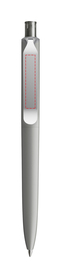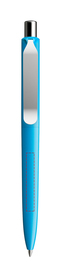Die Ikone eines klassischen Schreibgerätes. Wertige Clip-Druckknopf-Kombinationen aus Metall machen den DS8 Metall-Clip noch vielseitiger. Ein ausgewogener Material-Mix aus Metall und Kunststoff, der Marken gekonnt in Szene setzt. Metall-Clips in verschiedenen Finishs verleihen ihm einen luxuriösen Touch. Die farblich absetzbaren Clip-Holder bieten eine Möglichkeit, neben der Primärfarbe auch die Zweitfarbe der Corporate Identity harmonisch umzusetzen. In der Ausführung mit vollfarben mattem Gehäuse (PSM) lieferbar in sechs Standardfarben, hergestellt mit einem Rezyklatanteil von 100% (Schwarz und Weiß) oder 50% (alle anderen Farben), gekennzeichnet mit dem internationalen Recycling-Symbol. Sondergehäusefarben ab 5.000 Stück. Fünf Druckflächen für Werbeanbringungen stehen zur Verfügung. Die Standardausführung ist mit Silber satiniertem Clip ausgestattet. Als Option stehen Clips in galvanisiertem Schwarz oder Graphit zur Auswahl. Der Druckknopf ist aus Kunststoff. Ausgestattet mit der umweltfreundlichen auswechselbaren FLOATING BALL® lead free-Großraummine 1.0, Schreiblänge 5.000 m, Schreibfarbe Blau oder Schwarz.