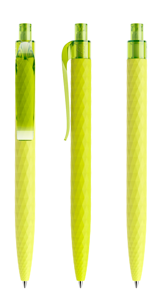 Haptik ist die neue Optik. Das Muster im und nicht auf dem Schreibgerät eröffnet eine neue Dimension in Ästhetik und Kommunikation. Beim QS01 als faszinierend facettenreiche Dreiecksstruktur, die sich dem Auge immer wieder neu und anders darstellt und von den Fingerspitzen als angenehme Grifffläche erlebt wird. Den QS01 mit seiner facettenreichen Oberflächenstruktur gibt es in neun Soft Touch-Farben, zwei mit poliertem Clip/Druckknopf sowie sieben mit transparentem Clip/Druckknopf, hergestellt mit einem Rezyklatanteil von 100% (Schwarz) oder 50% (alle anderen Farben), gekennzeichnet mit dem internationalen Recycling-Symbol. Sondergehäusefarben ab 5.000 Stück. Polierter oder satinierter Metalldruckknopf als Option. Ausgestattet mit der umweltfreundlichen auswechselbaren FLOATING BALL® lead free-Großraummine 1.0, Schreiblänge 5.000 m, Schreibfarbe Blau oder Schwarz.